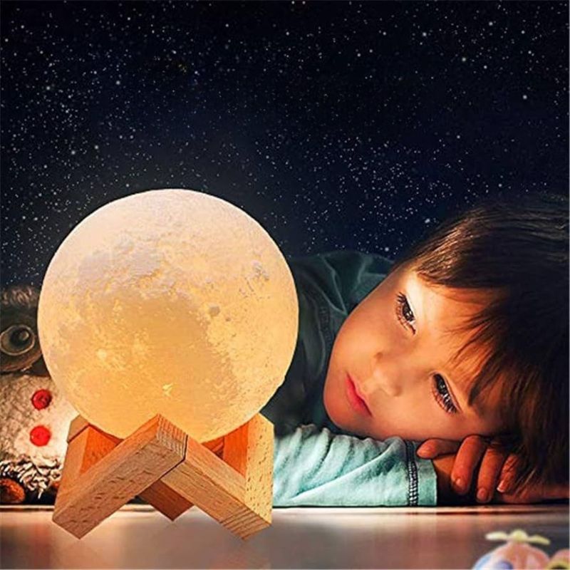 3D Printed Moon Lamp Night Light – 15cm Rechargeable 16 Color LED Starry Lamp with Wooden Stand & Remote Control for Bedroom Decor & Gifting