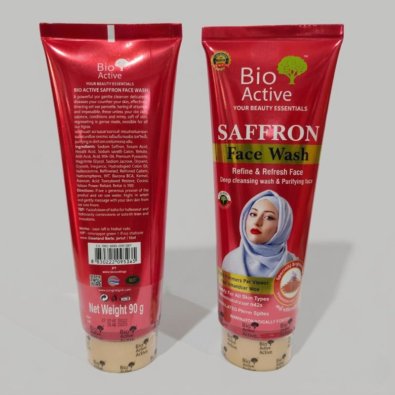 Bio Active Saffron Face Wash (90ml) – Original Thailand Made Natural Brightening & Glowing Skin Cleanser for Men & Women
