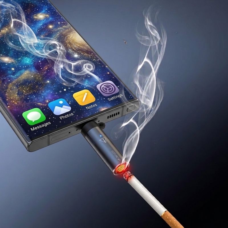 Portable USB-C Smartphone Lighter – Windproof OTG Powered Electric Lighter with Blow-to-Ignite Sensor for Android & Type-C Devices