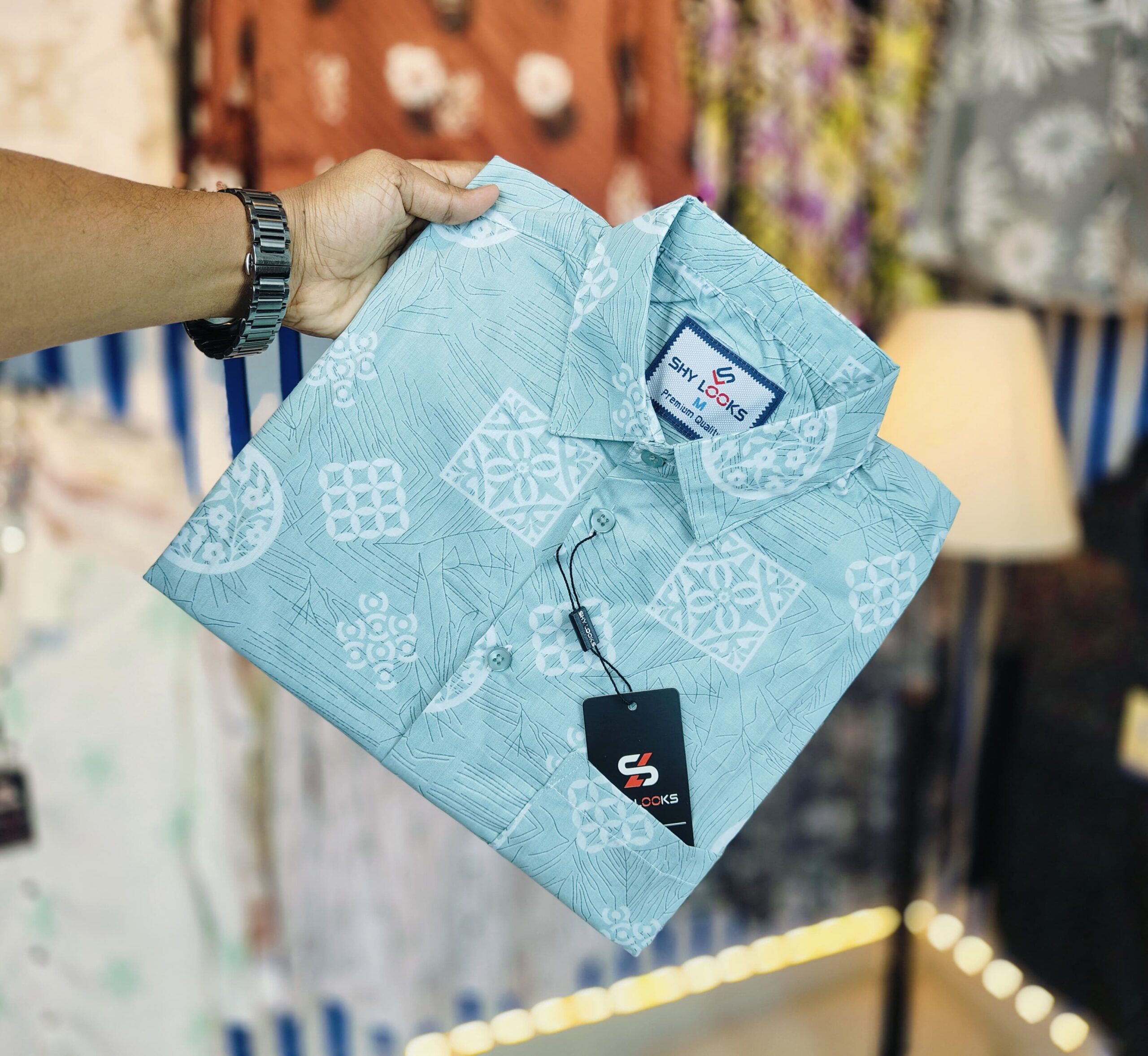 Shy Looks Premium Pure Cotton Summer Print Shirt for Men – Slim Fit Half Sleeve