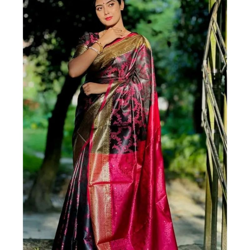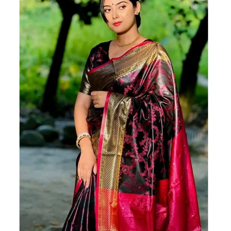 Royal Benarasi Katan Silk Saree with Blouse Piece – Premium Zari Work Wedding Wear